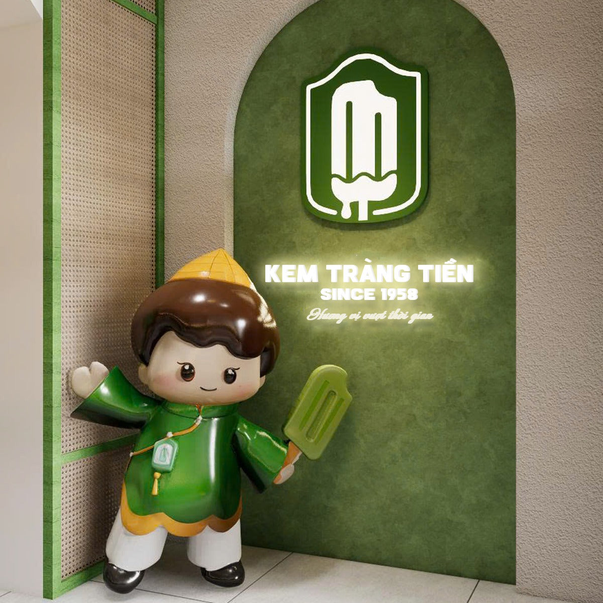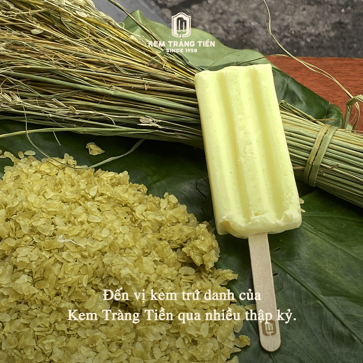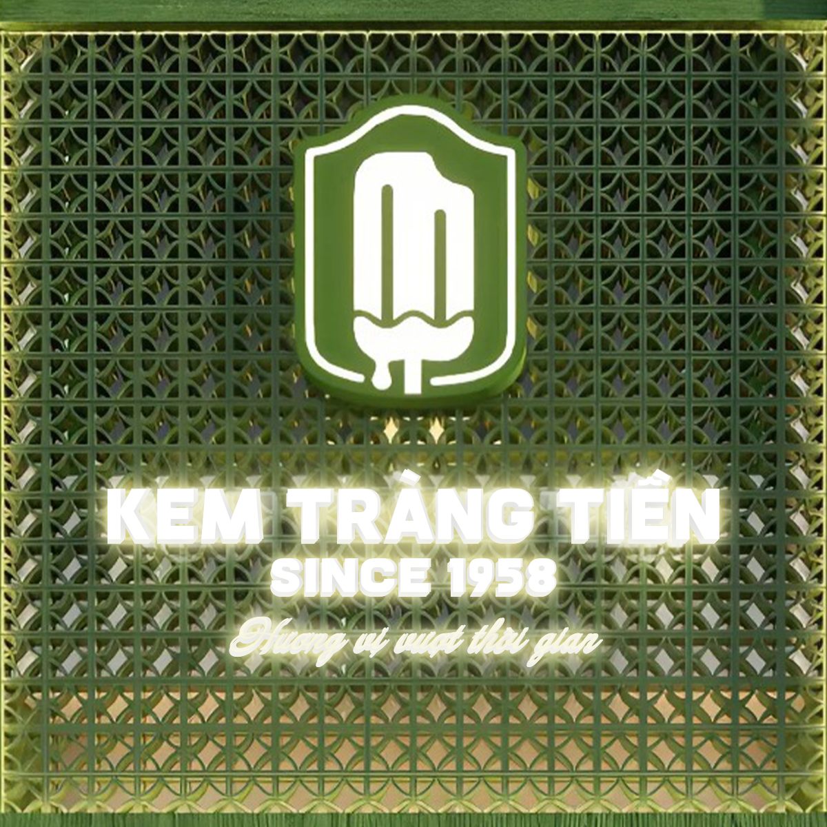 Logo mới của Kem Tràng Tiền với hình ảnh nổi bật là cây kem que bao bọc xung quanh là hình ảnh cách điệu từ mái vòm của tòa nhà Kem Tràng Tiền cùng dòng chữ Kem Tràng Tiền since 1958.